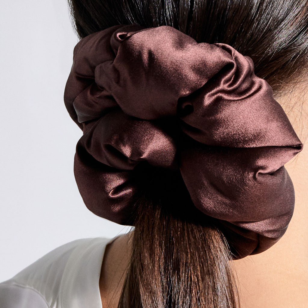 The only hair sleep accessory you'll ever need. This XXL scrunchie is an absolute statement piece for whoever wears it. The unique oversized design cocoons your hair, preventing it from snagging or pulling during the night. The unique padded silk design promotes thick, glorious volume and elevates your hair health and style. For nighttime use (or looking extra glam at any time of day).